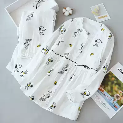 Three-layer gauze confinement clothes Spring and autumn pure cotton thin maternity pajamas long-sleeved postpartum nursing home clothes cotton set