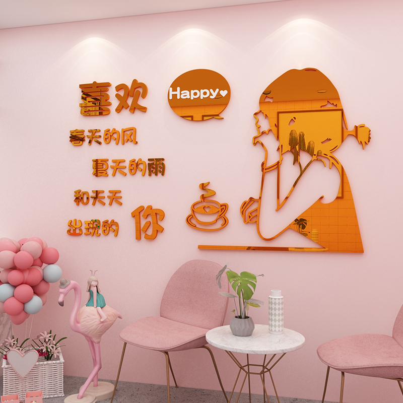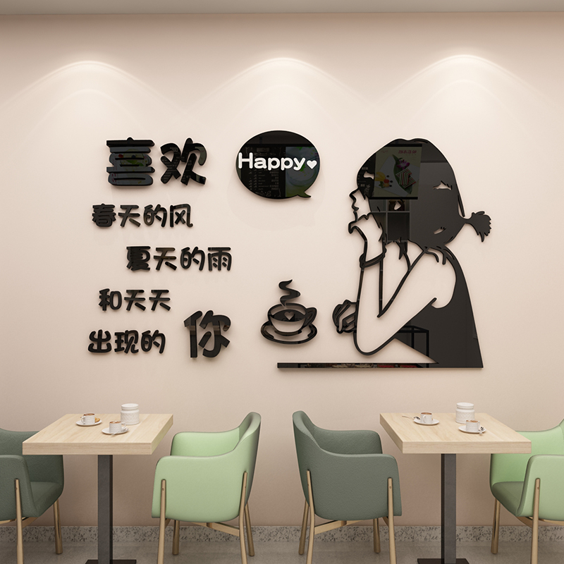 Milk tea shop wall decoration creative personality net red background wall sticker painting glass dessert cake cash register bar