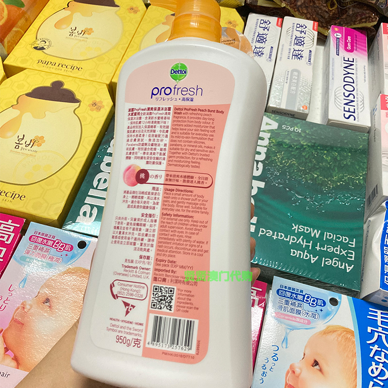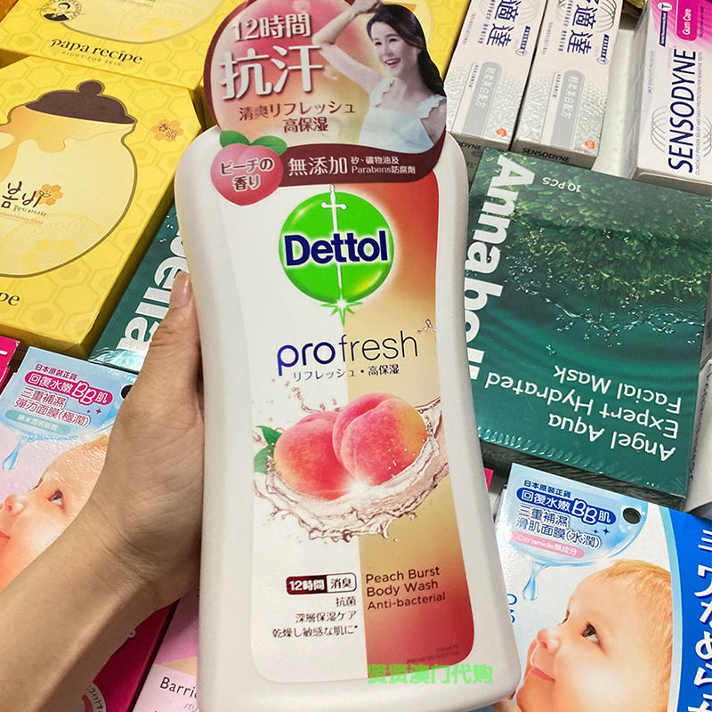 Macao drip dew DETTOL refreshing moisturizing and moisturizing body lotion with water honey peach fragrant anti-sweat family clothing 950 gr