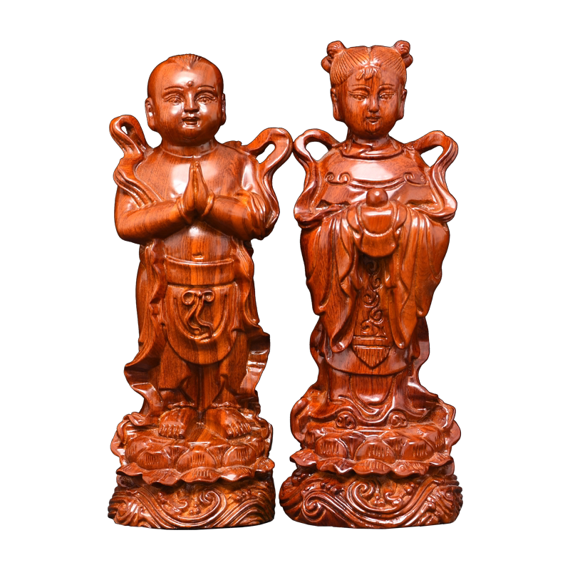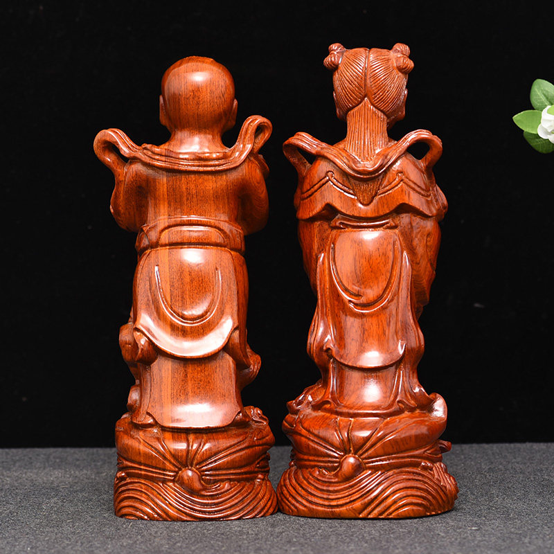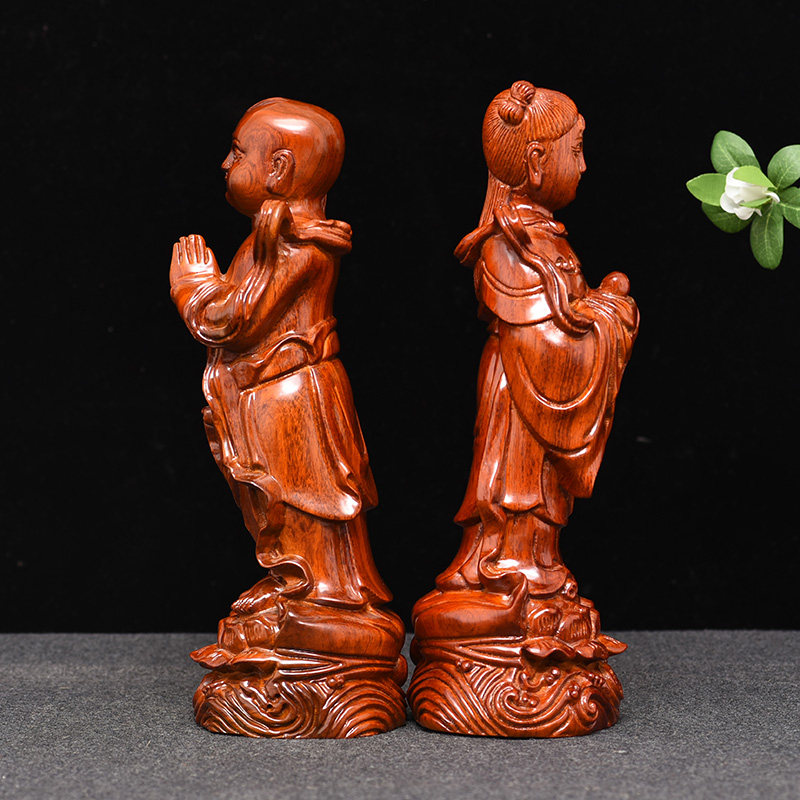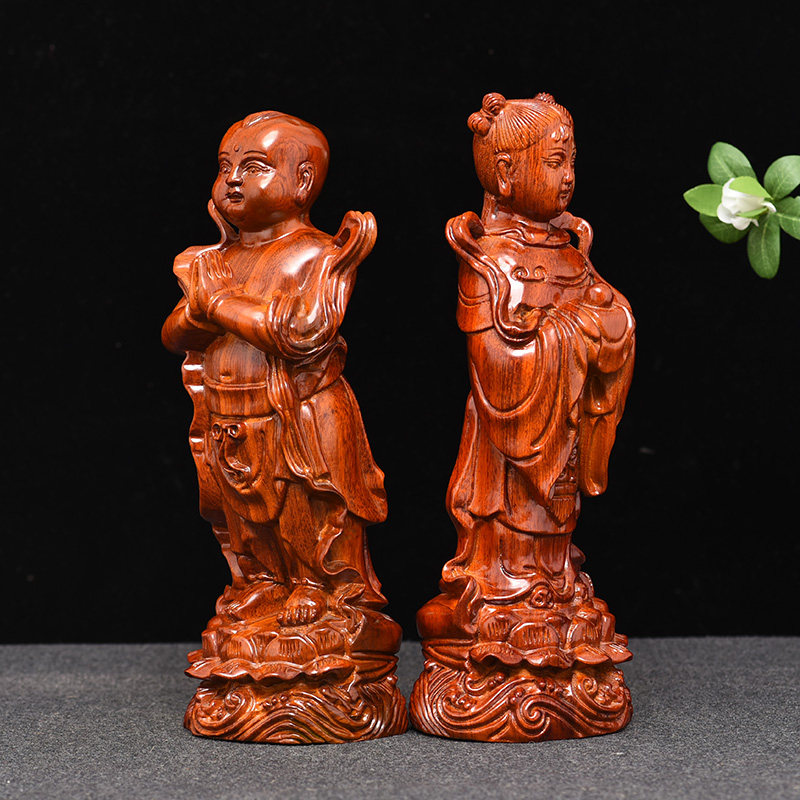 Looking for ancient flowers pear wood carving golden child jade girl piece solid wood carving good rich child dragon girl for the Buddha statue wedding gift