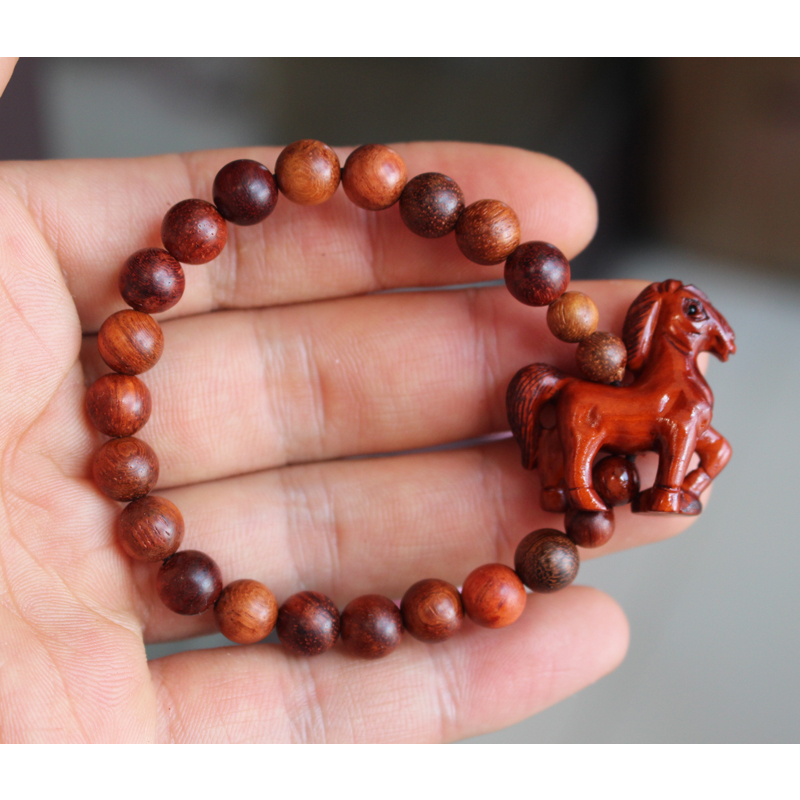 Chinese zodiac peach wood horse hand-carved Buddha bead natal year wooden hand-carved bracelet three-in-one six-in-five elements and three meetings