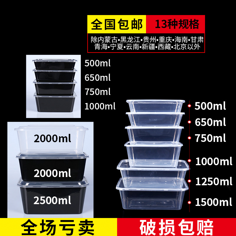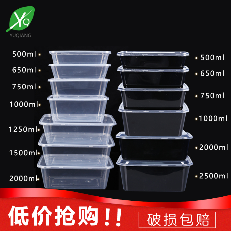 Yu Qiang Disposable lunch box Square box Packing box Delivery lunch box Rectangular thickened transparent plastic lunch box with lid