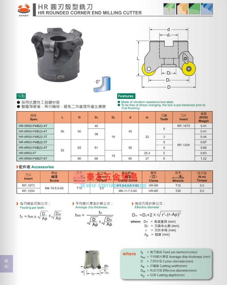Taiwan KOVIT Positive River Source HR Round Edge Shell Type Milling Cutter Numerical Control Cutter Pan HR-5R50-FMB22-4T