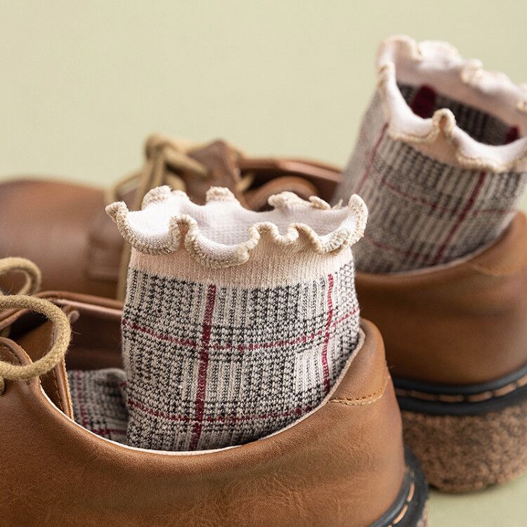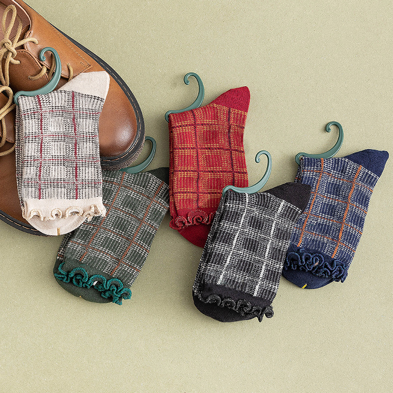 Newnay Socks Female Midbarrel Socks Grid Retro Day Ensemble Spring Summer Thin senna Lace Socks Trend Autumn Bubble Socks