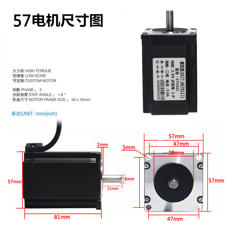 57 stepper motor 2 3N drive stepper motor 57HS22 diphase four-wire 3A engraving machine drilling machine length 81mm