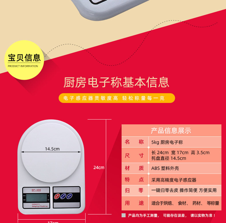 Kitchen scale baking electronic scale home small electronic weighing 1g precision weighing food gram weighing small scale