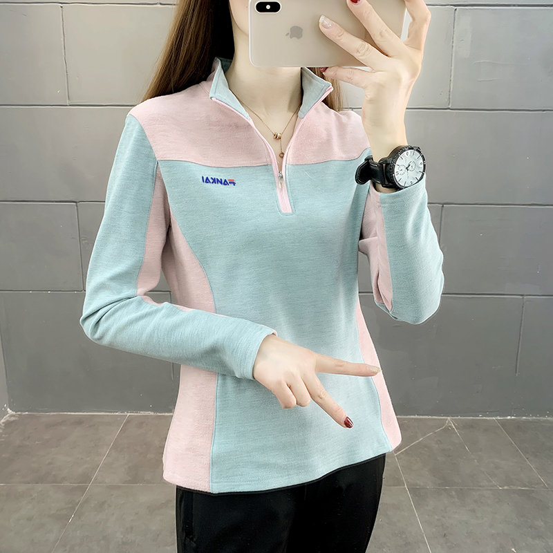 Spring and autumn fleece women's thick clothes Korean elastic warm clothes rabbit plush pullover long sleeve T-shirt base shirt