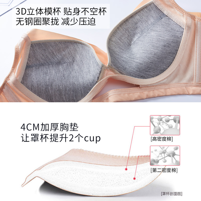 MiiOW cat people without steel ring gather up to thicken traceless closeted breast bra ladies small chest adjustment type of underwear