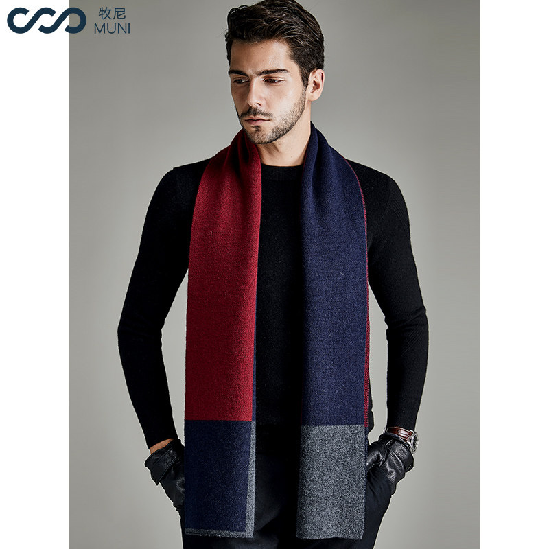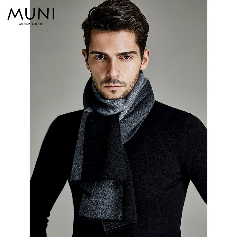 Muni MUNI light luxury pure Kashmir wool scarf men's autumn and winter all-match plaid warm scarf men's gift box