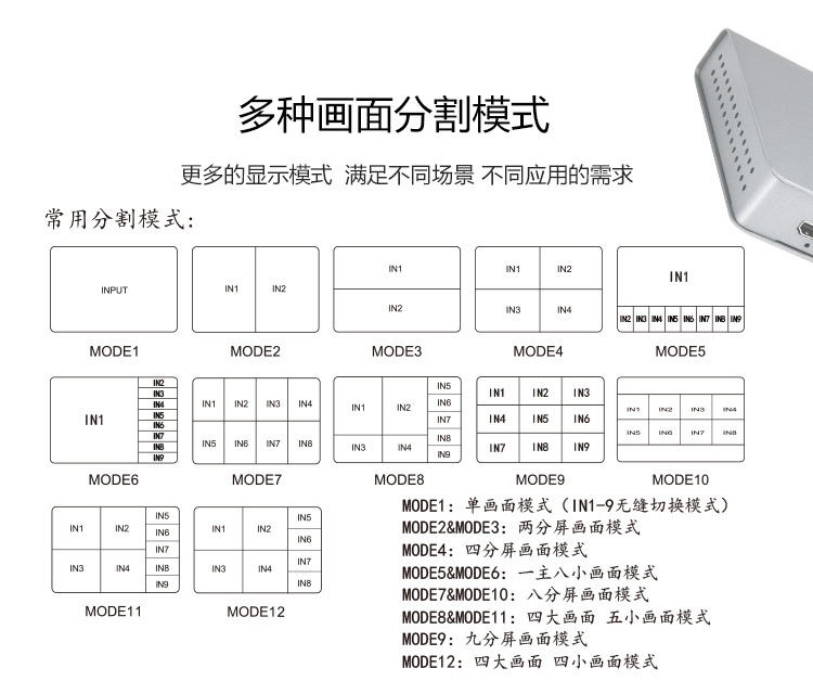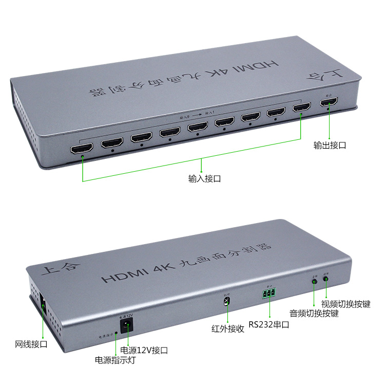 Time Valley 4K HD HDMI screen splitter 9 in 1 out seamless picture-in-picture switching 9-port surveillance video
