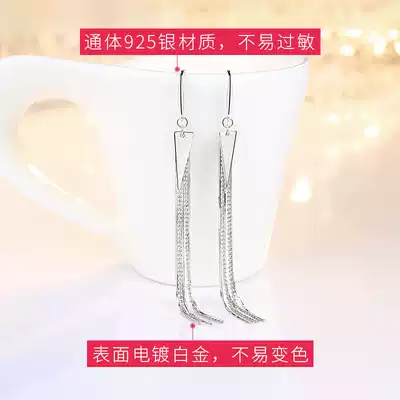Long version of tassel sterling silver earrings female 2021 New Tide Korean temperament Net red earrings niche design earrings