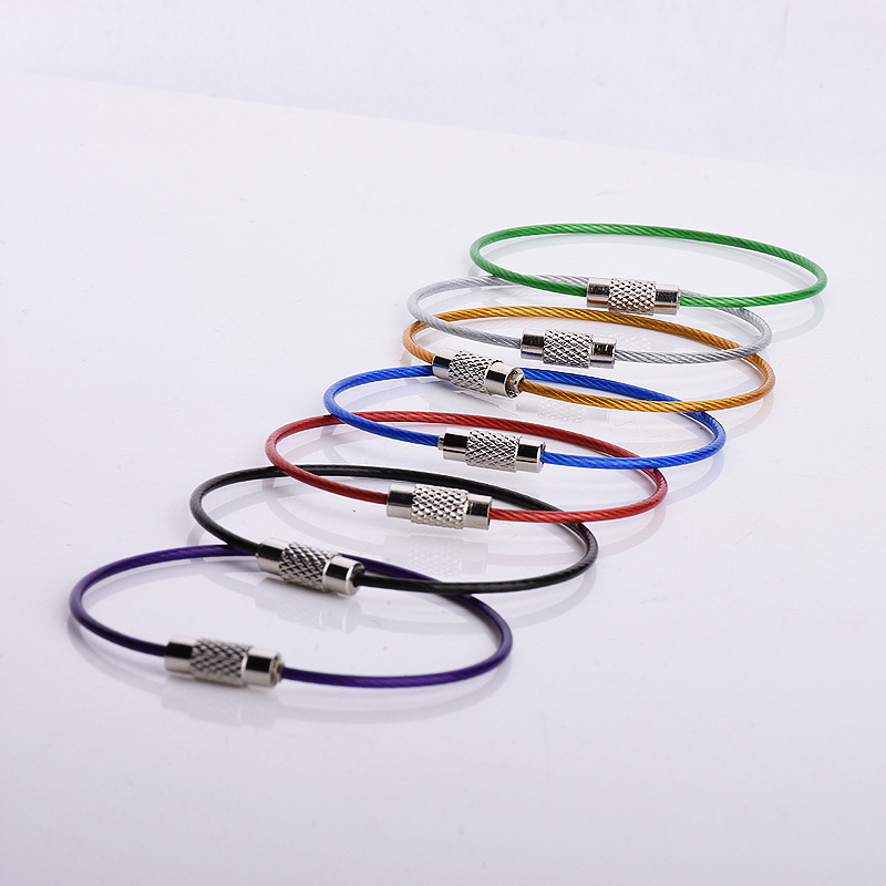 Rainbow Wire Coil Key Buckle Pendant steel wire rope Key ring stainless steel multipurpose steel wire hanging buckle steel wire buckle