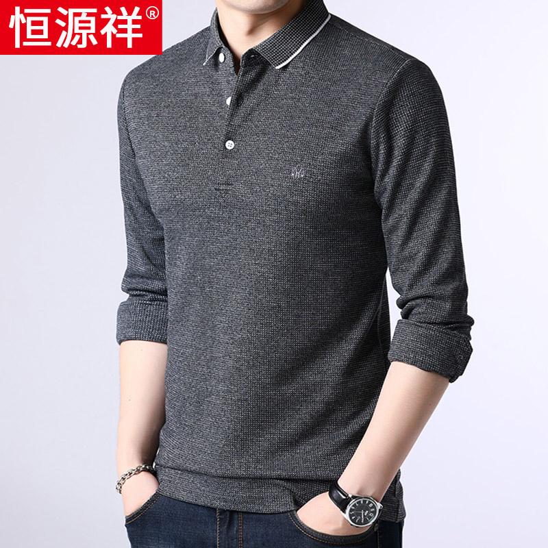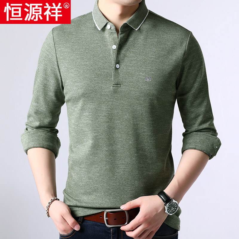 Hengyuan Xiang Men Long Sleeve T-shirt Turnover Dad Middle-aged Men's Clothing Polo Shirt Loose Casual Spring Dress T-shirt Clothes