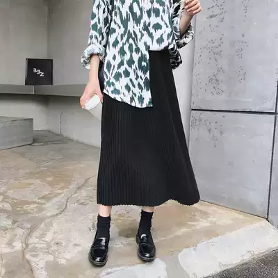 Love Rose big size women's fat mm long version of pleated skirt women's spring and autumn thin new black skirt autumn and winter long skirt