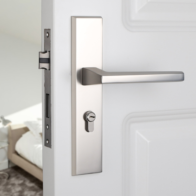 Nordic door lock indoor bedroom mute room door lock light luxury simple American black door handle brushed silver lock