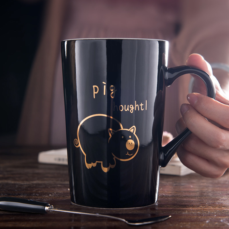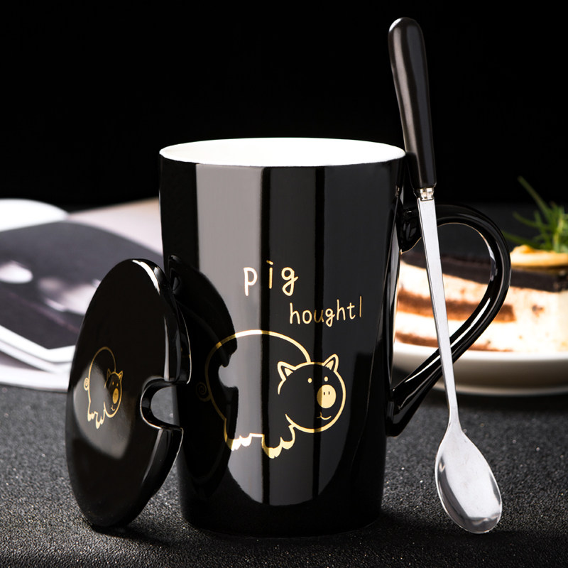 Creative cartoon mug with lid spoon Zodiac Cute ceramic cup couple Cup coffee personality trend Tea Cup