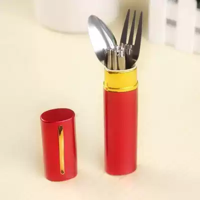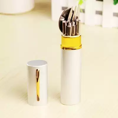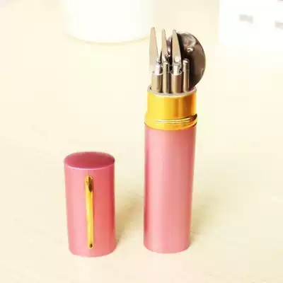 Set of stainless steel retractable tableware three-piece set of chopsticks folding fork spoon portable pen type easy to carry