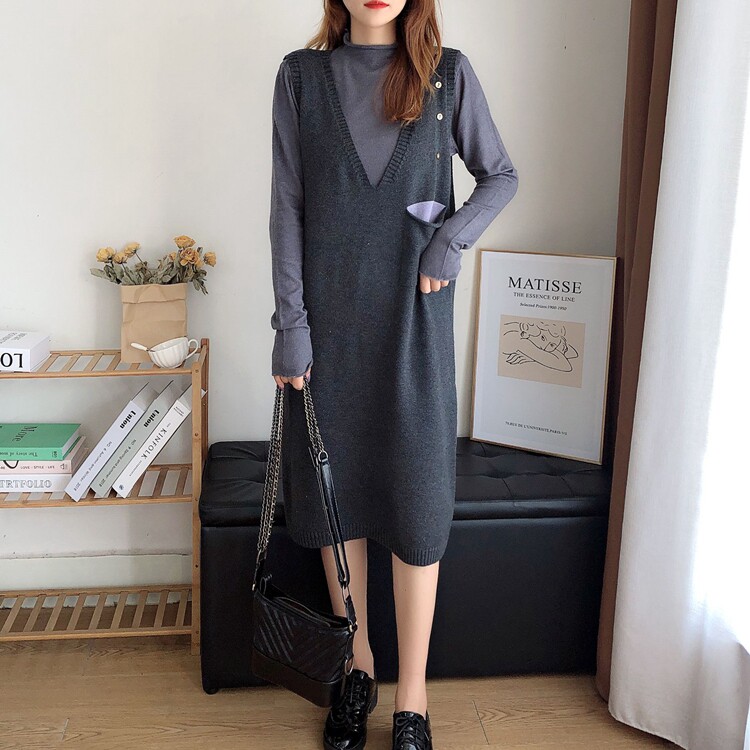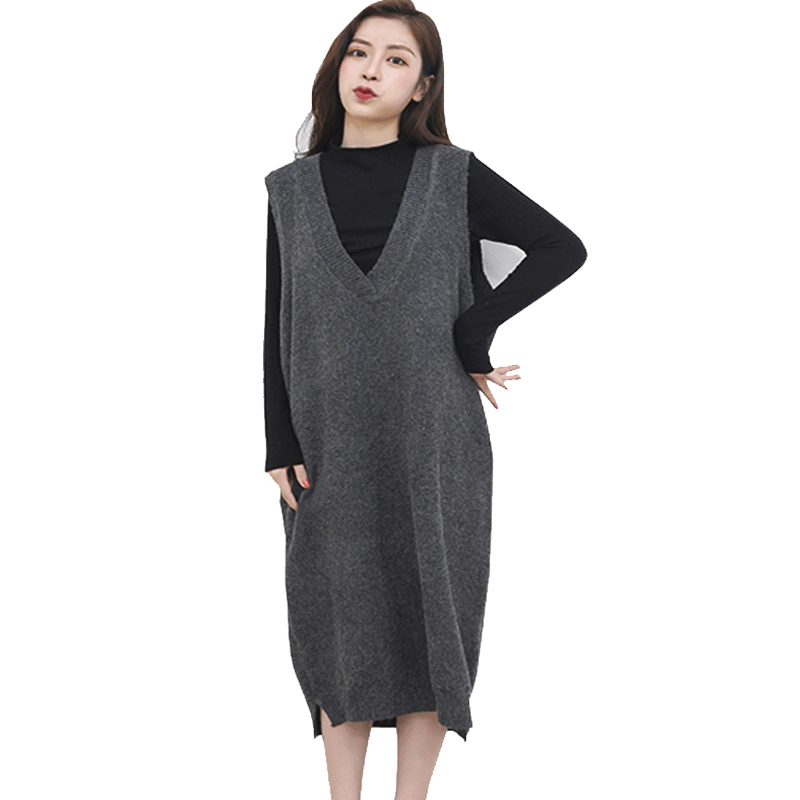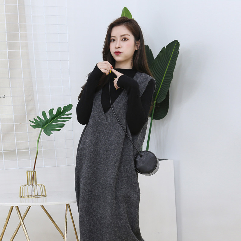 Maternity autumn suit fashion sweater dress autumn winter Korean version loose size knitted vest strappy skirt woman