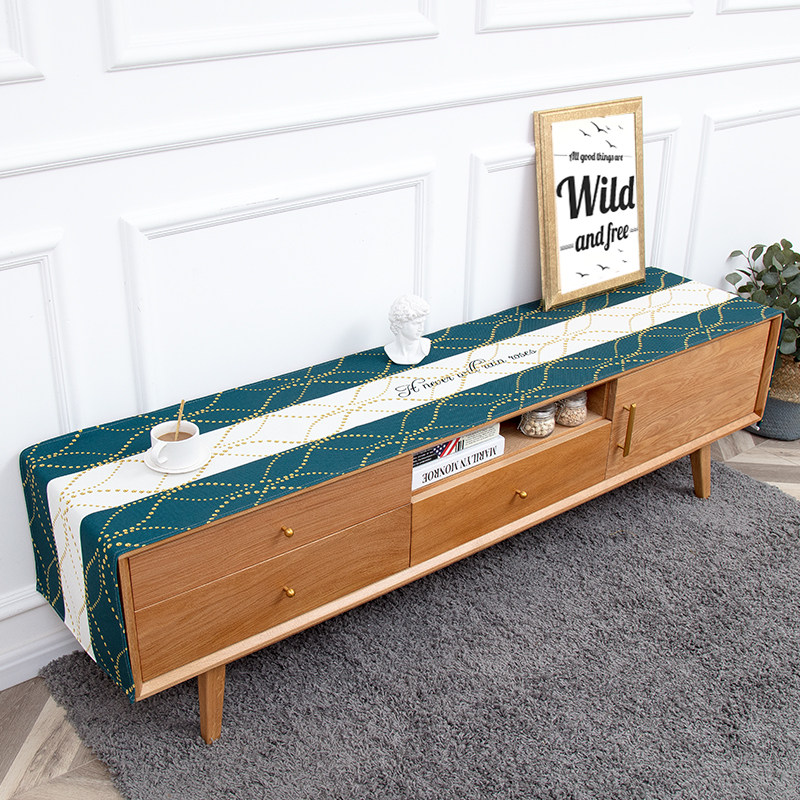 ins net red wind rectangular TV cabinet cover cloth anti-dust waterproof tea table table flag thickened cotton linen can be customized-Taobao