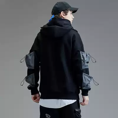 GUUKA Tide brand black thick cotton T male hooded youth Hip hop high collar multi bag pants thick cotton T loose