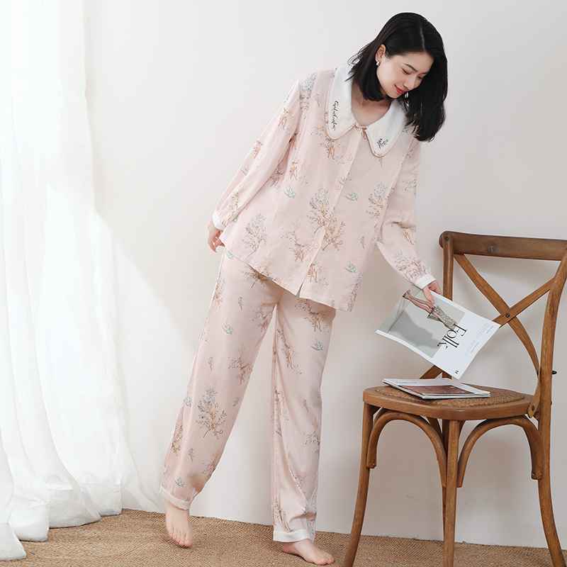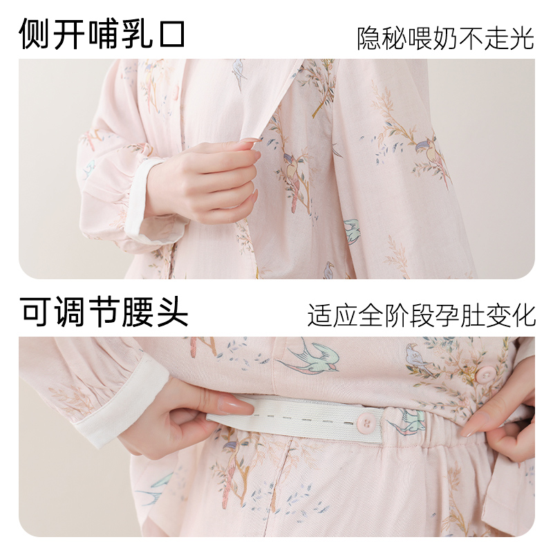 loveloc lunar subdress Spring autumn pregnant woman Pregnant Breastfeeding Pyjamas bamboo cotton breathable gauze Comfort Home-Taobao
