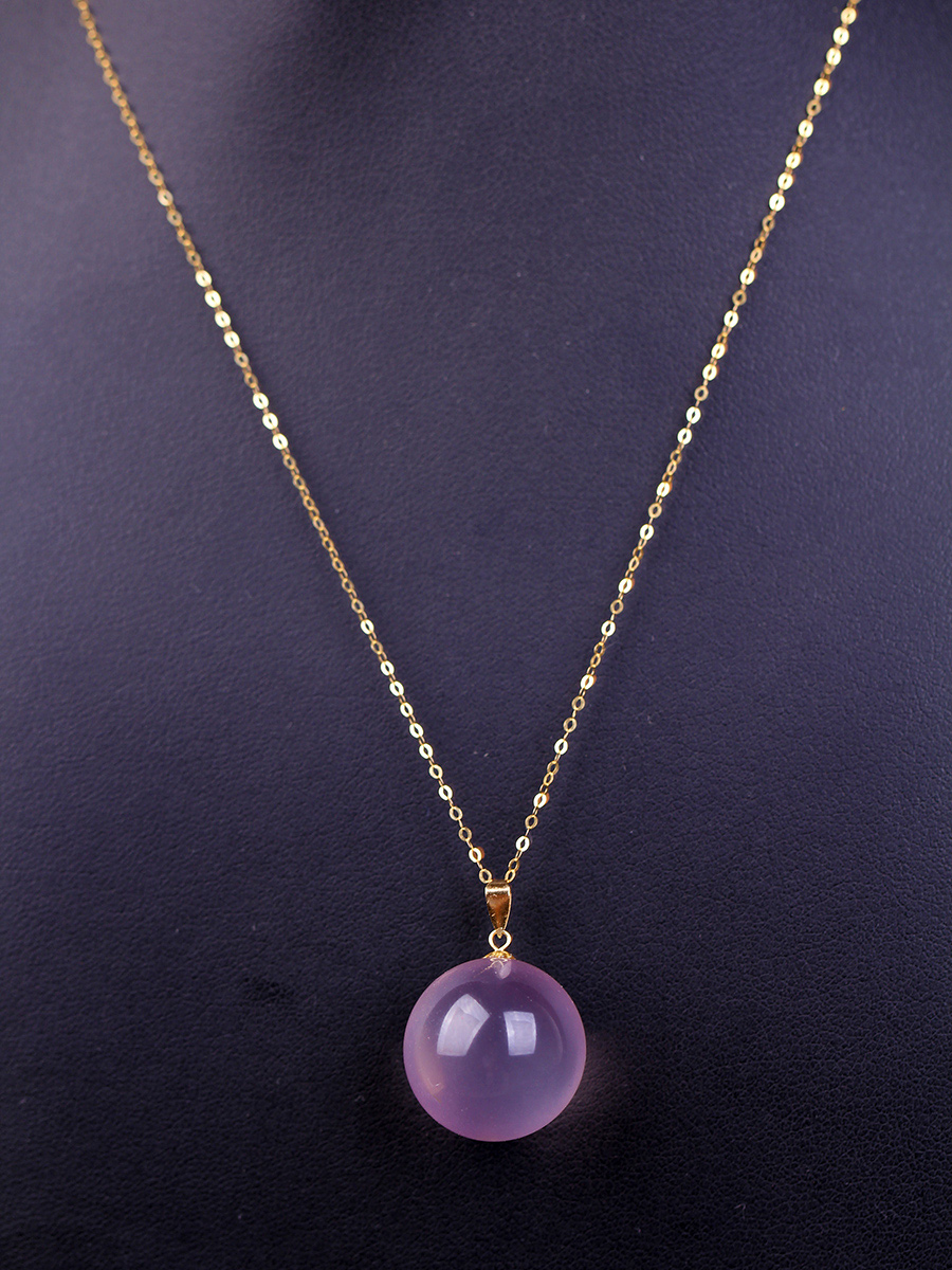Natural pink crystal hibiscus stone pendant star powder crystal gem G18K gold strokes peach pink collarbone necklace