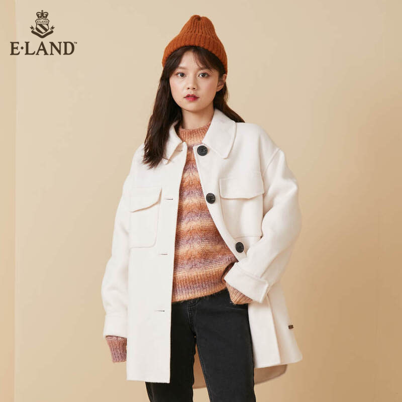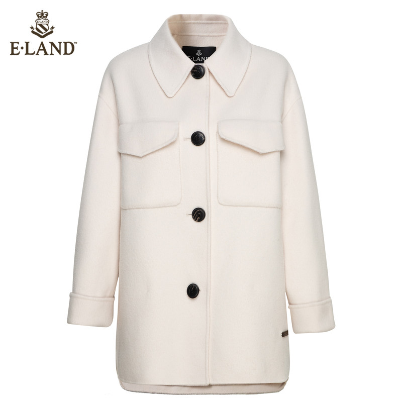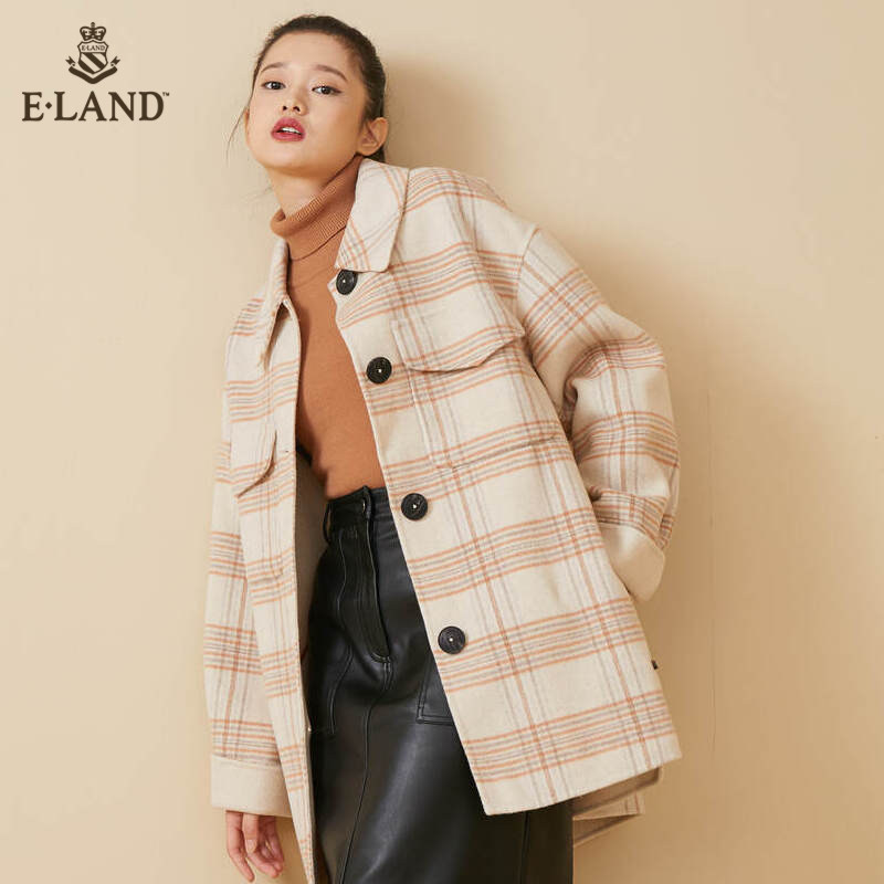 ELANND clothing lovers sweet and savour with a long version of plaid in the white coat woman