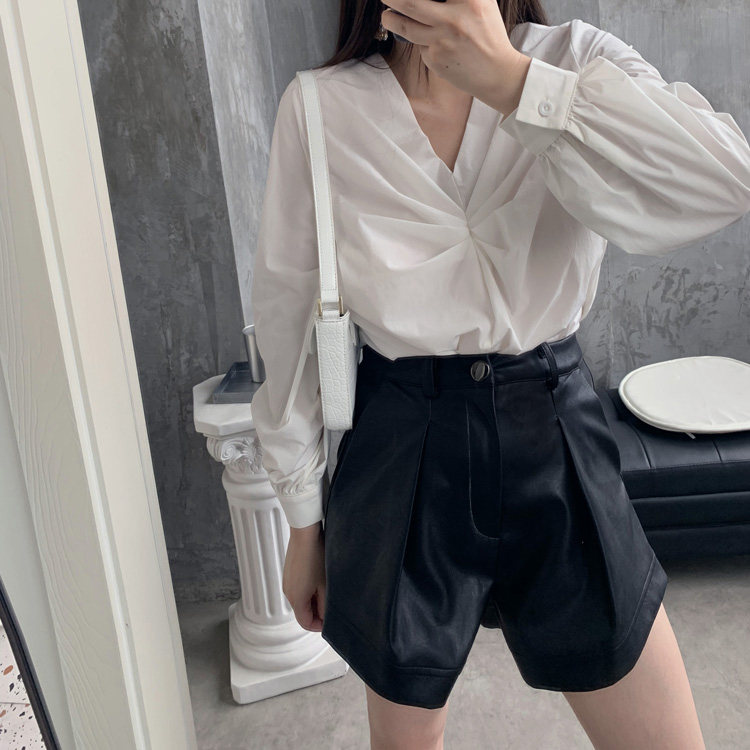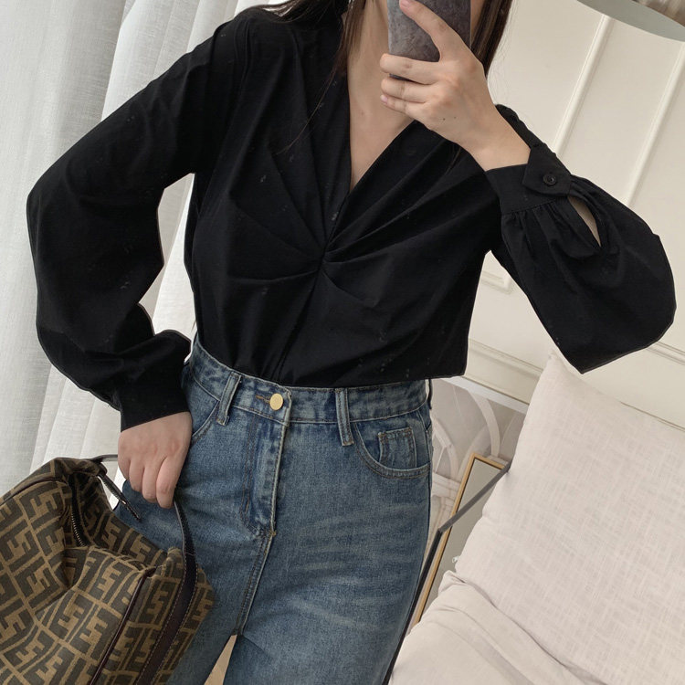 (LAMOBO exclusive) Stereo-folding V collar slim-length sleeve autumn shirt-Taobao