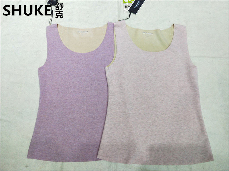 Shuke SN906-3 silk underwear seamless warm vest vest ladies round neck base plus velvet medium thickness
