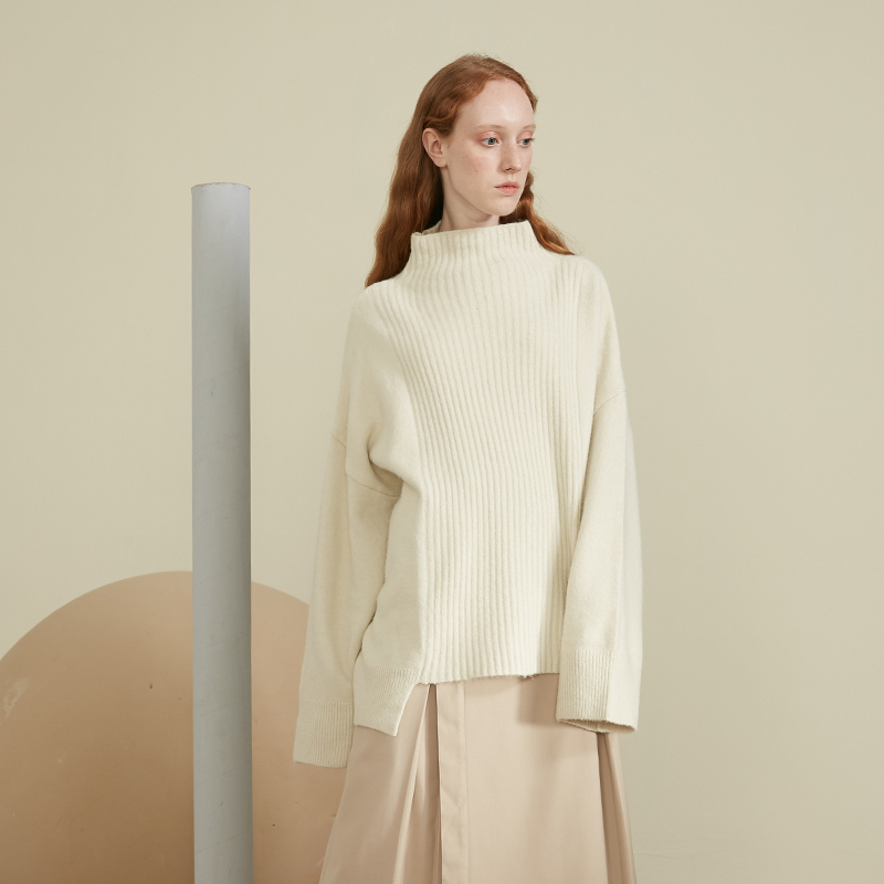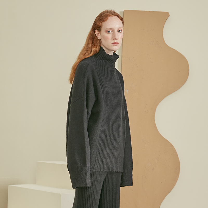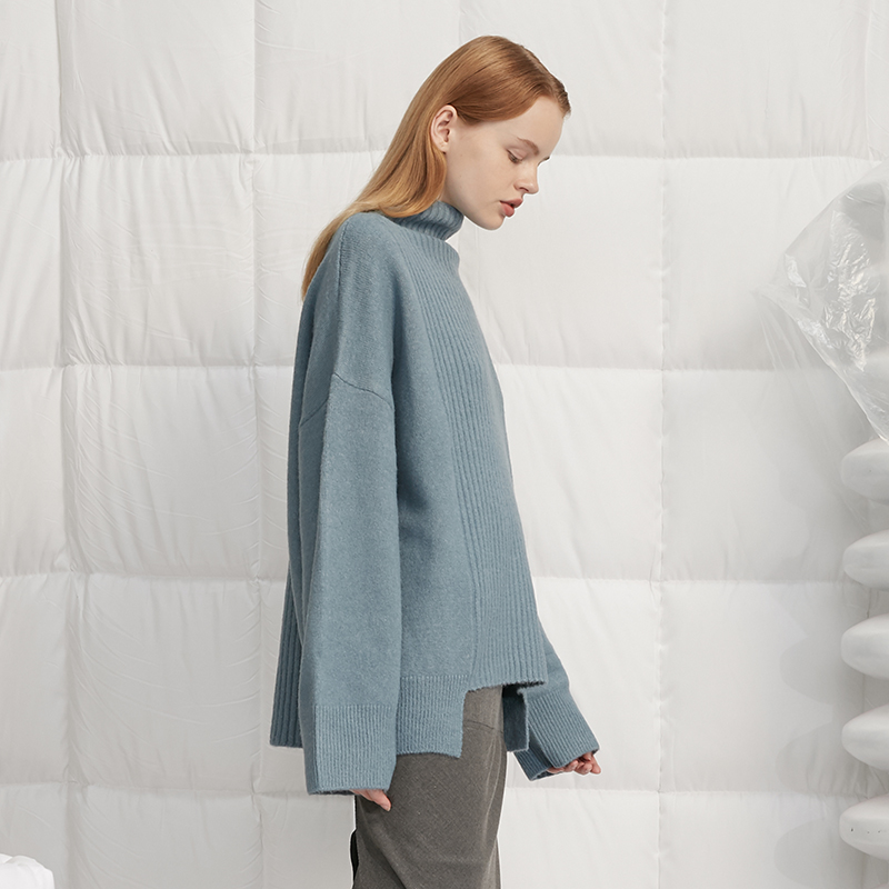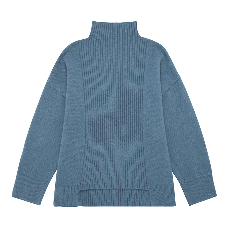 Qingt DIDDI original gray blue half - collar sweater woman loose warm knitted sweater 2022 autumn and winter