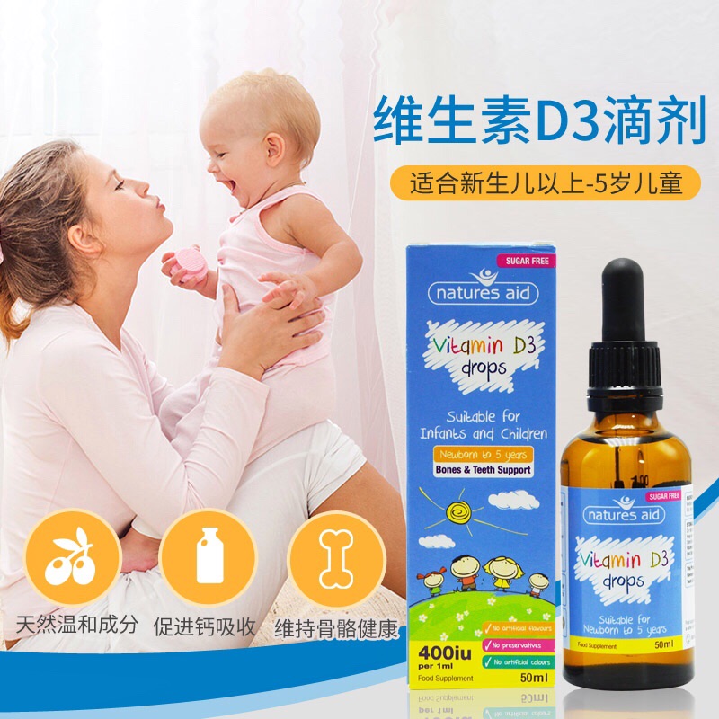 British natures aid infant vd3 vitamin D drops baby supplement d3 to promote calcium absorption