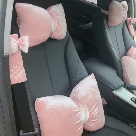 Solid color bow car pillow neck pillow women's car seat pillow car cute pair of creative pillows