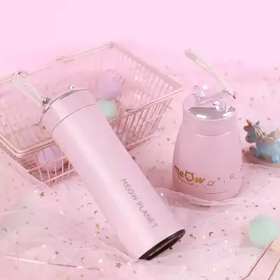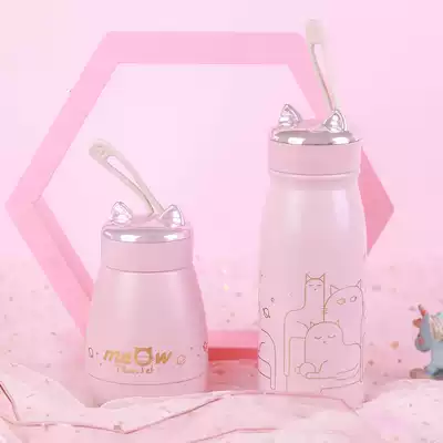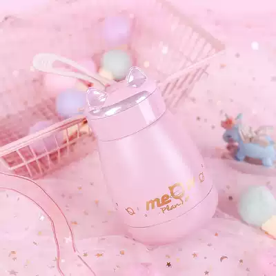 Cat thermos bottle girl heart mini small cup Cute student children portable creative personality trend adorable water cup