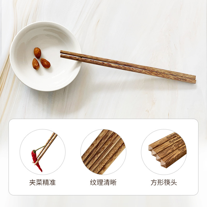 Moltobella household chicken wing wood chopsticks Wax-free paint-free mildew-proof solid wood tableware Japanese style 10 pairs of family