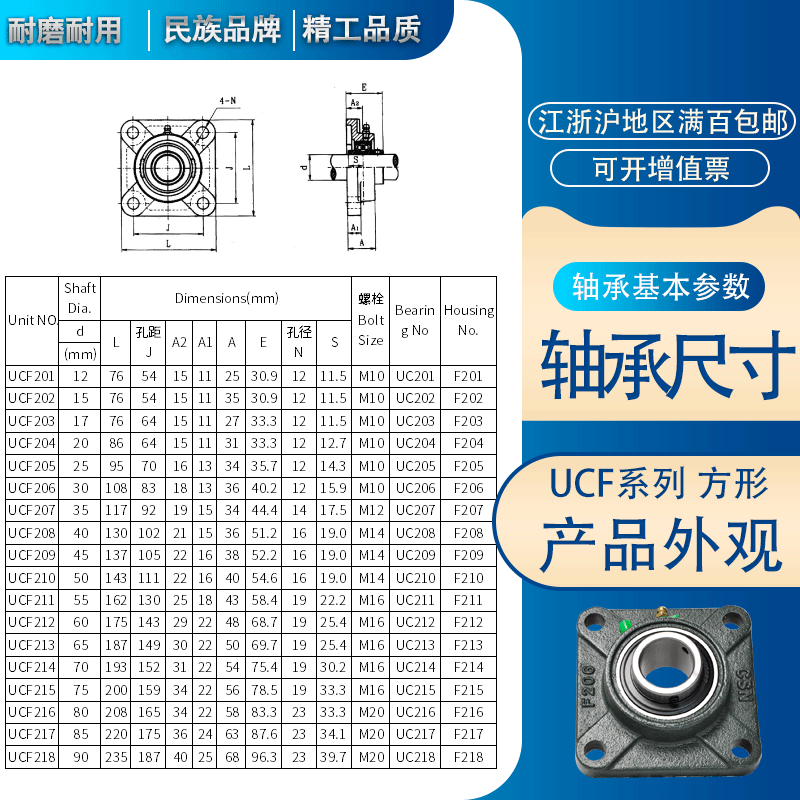 External ball face with seat bearing UCF204 F205 F205 F207 F208 F209 F210 F210 square shaft shell