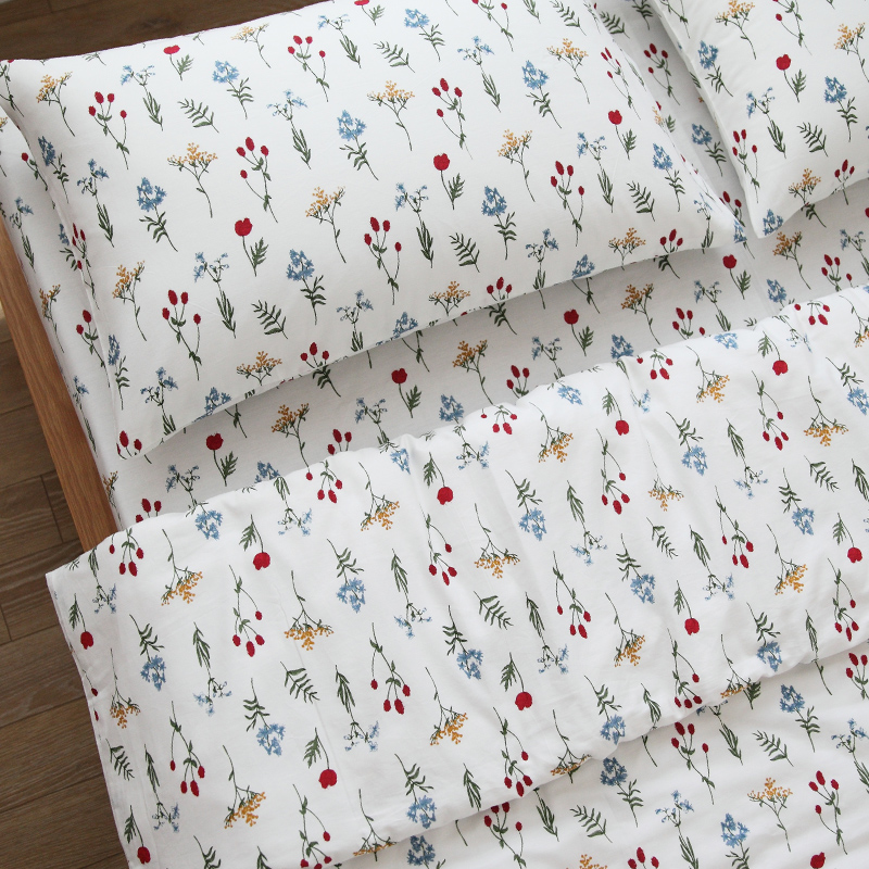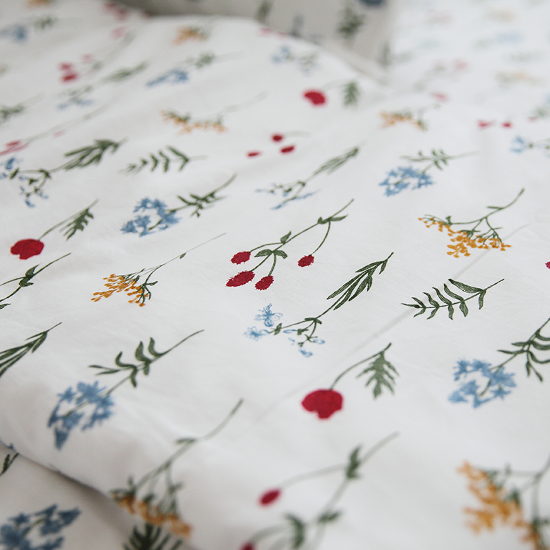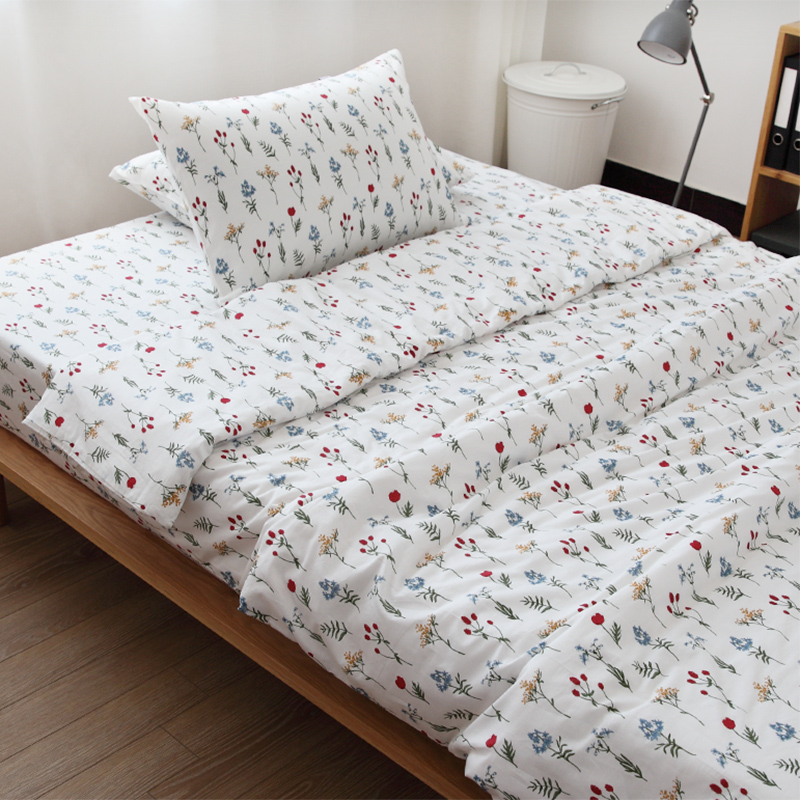 Tang Dynasty, a fish, fresh art, small flowers, Japanese cotton sheets, quilt cover pillowcase, customized three or four sets