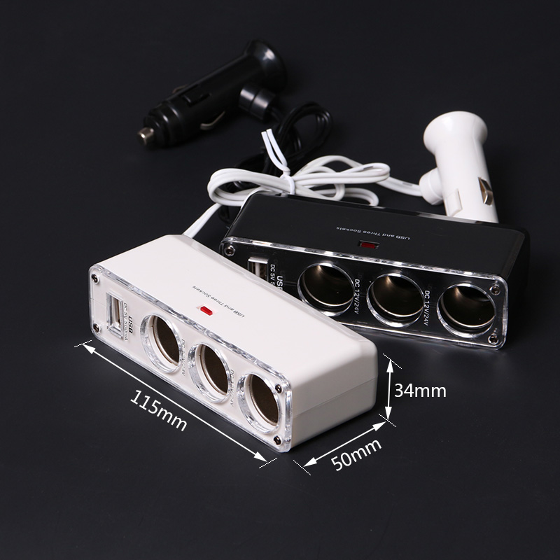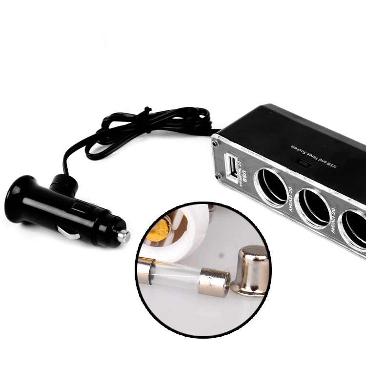 Car cigarette lighter one drag three with usb on-board charger 10% Three-car charging conversion plug multifunction