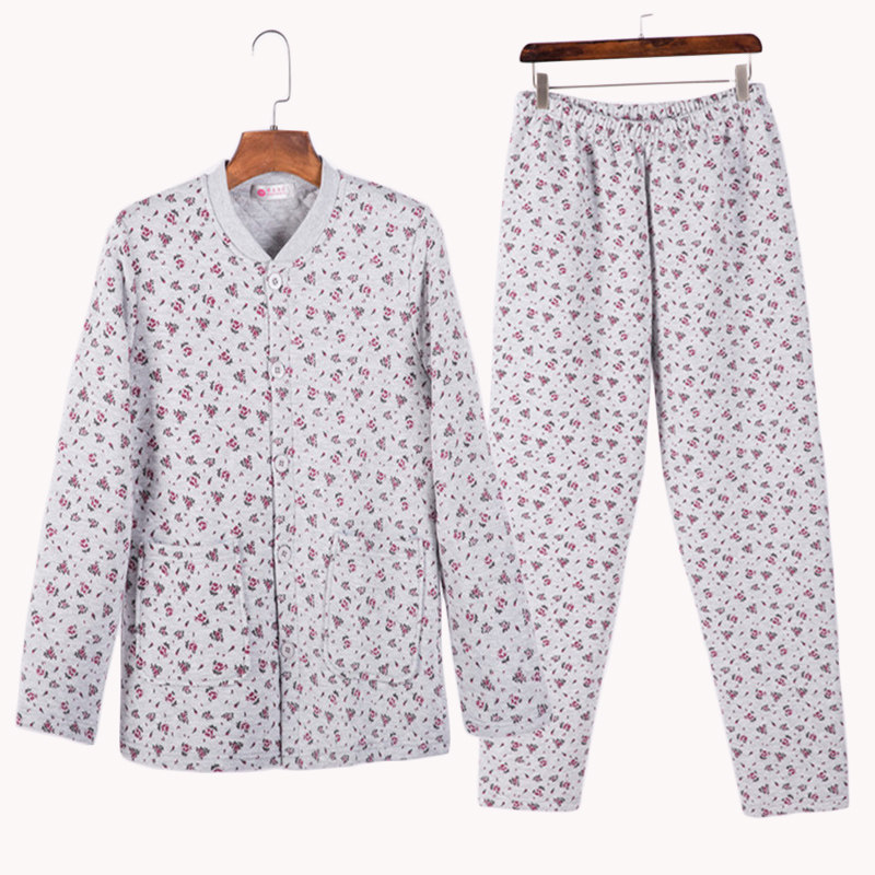 Winter women's pure cotton cardigan jacket plus fertilizer plus size autumn clothes sanitary pants fever underwear middle-aged and elderly grandma three-layer quilted