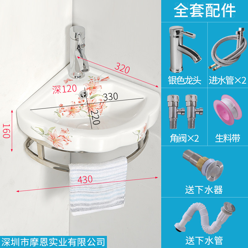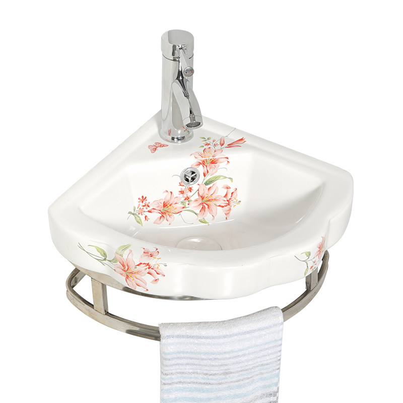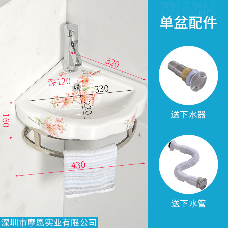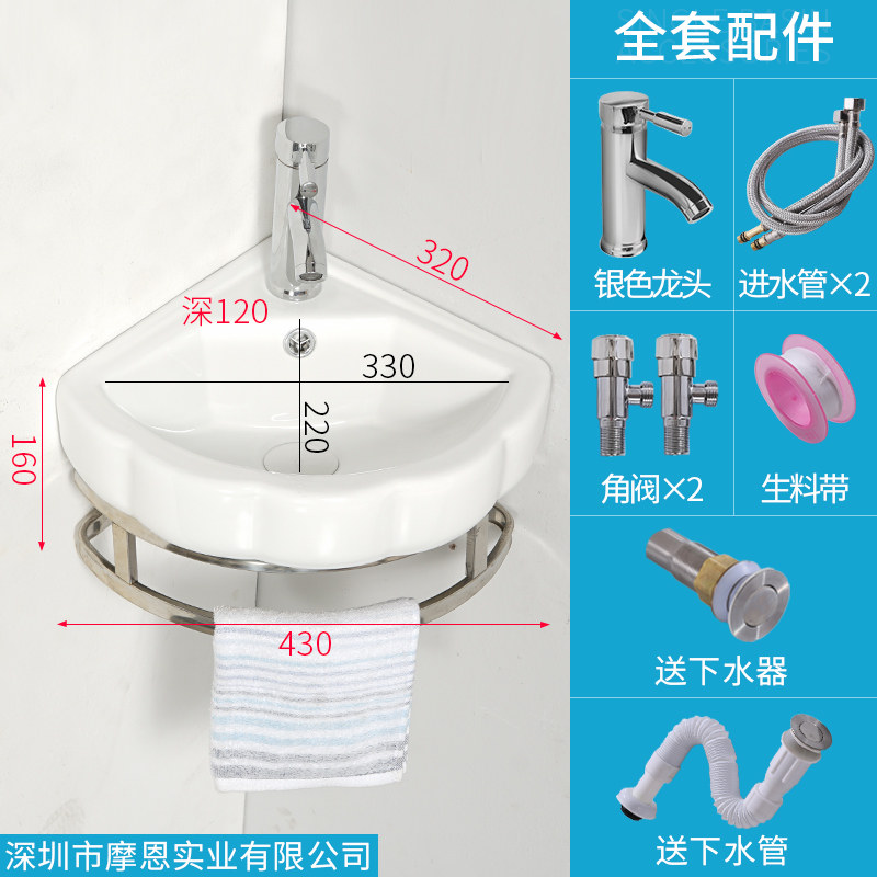 Triangular Face Basin Stainless Steel Bracket Wall Corner Washbasin Small House Type Hanging Wall Type Corner Ceramic Mini Wash Basin