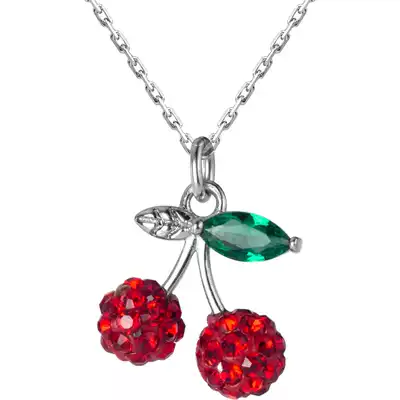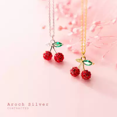 Love Rocky s925 Silver Sweet Cherry Pendant Necklace Mori Simple Full Diamond Design Girl Fashion choker