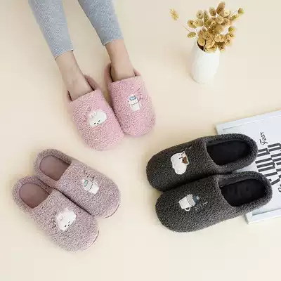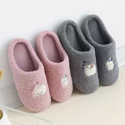Cotton slippers female student dormitory half-bag with autumn and winter slippers non-slip home cute plush warm bedroom dedicated