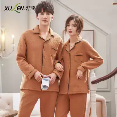 Couple pajamas male Lady Spring and Autumn thick cotton long sleeve autumn and winter thin cotton cotton home clothing simple set