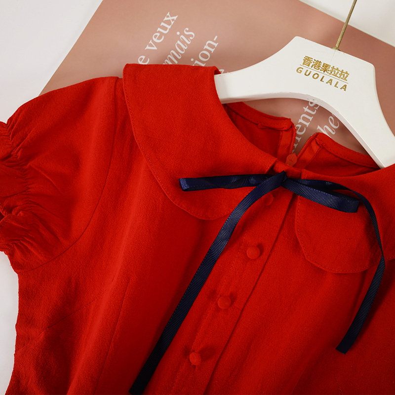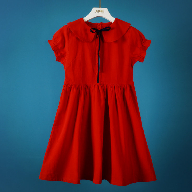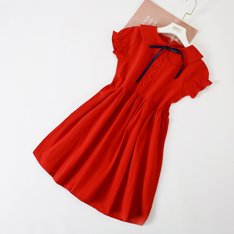 Girl Foreign Dress 2022 Spring Summer Dress New CUHK Children's Baby Foreign Pie Short Sleeve Pure Cotton Doll Collar Princess Dress