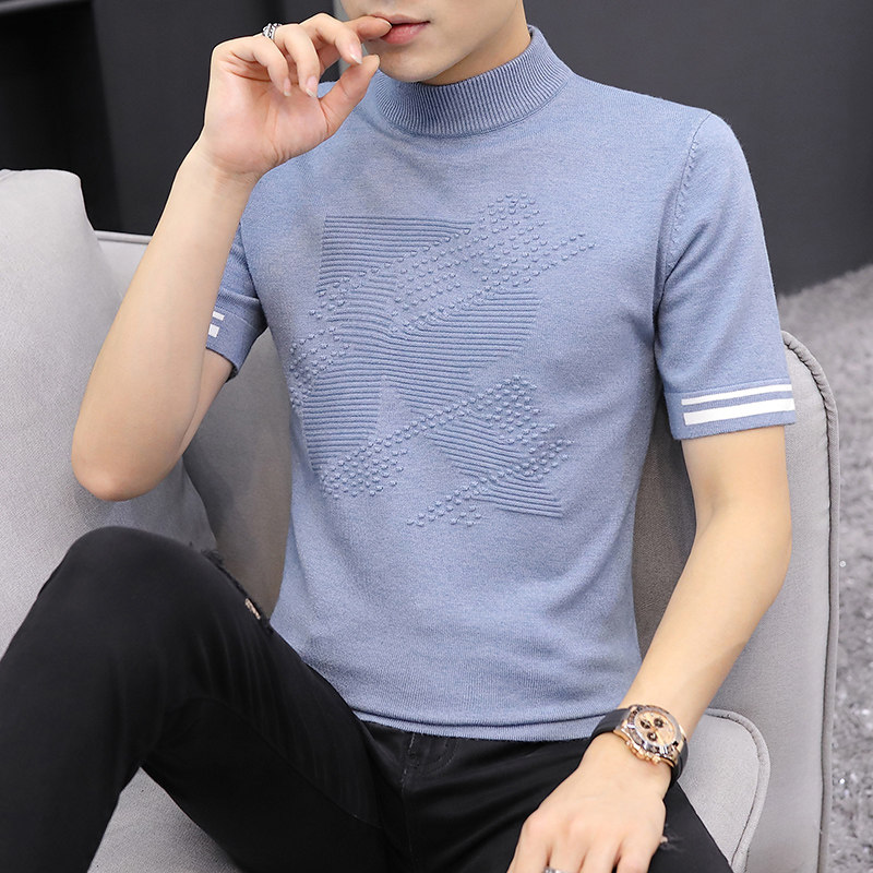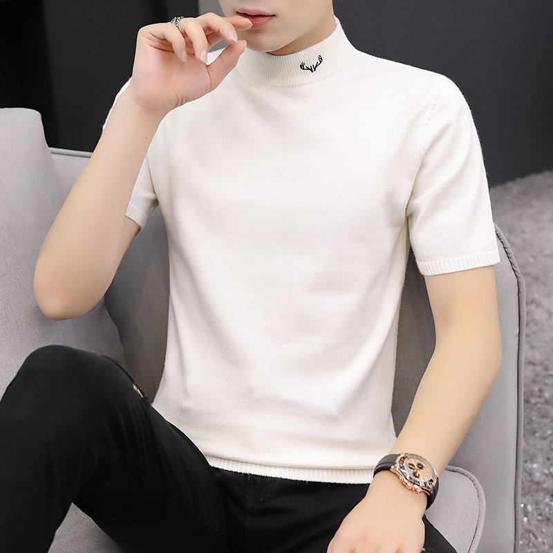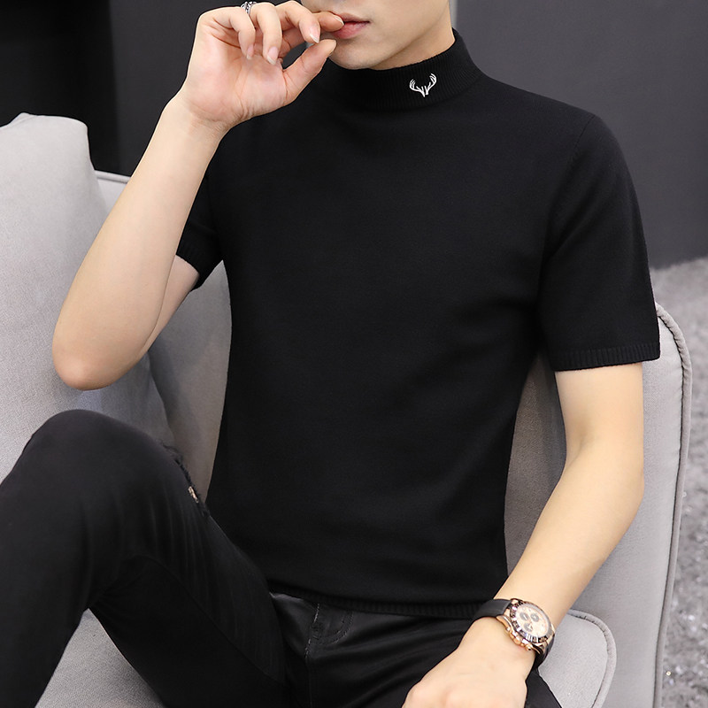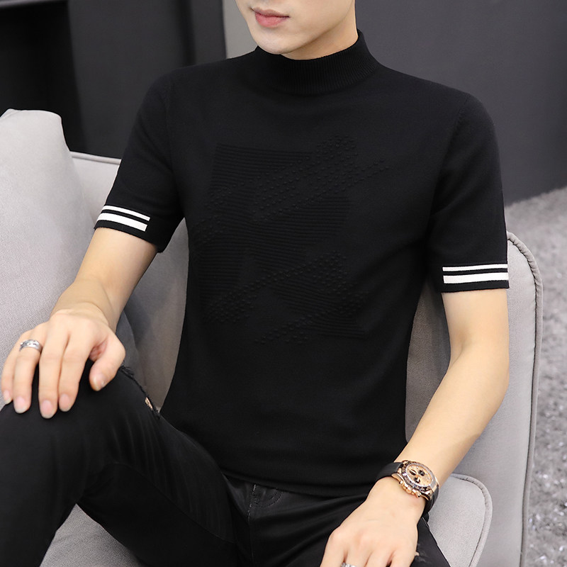 Spring Autumn Season Short Sleeve Sweater Damp Men's Half High Collar Hitch Bottom Stitch Cardiovert Half Sleeve T-shirt Youth Middle Collar Blouse