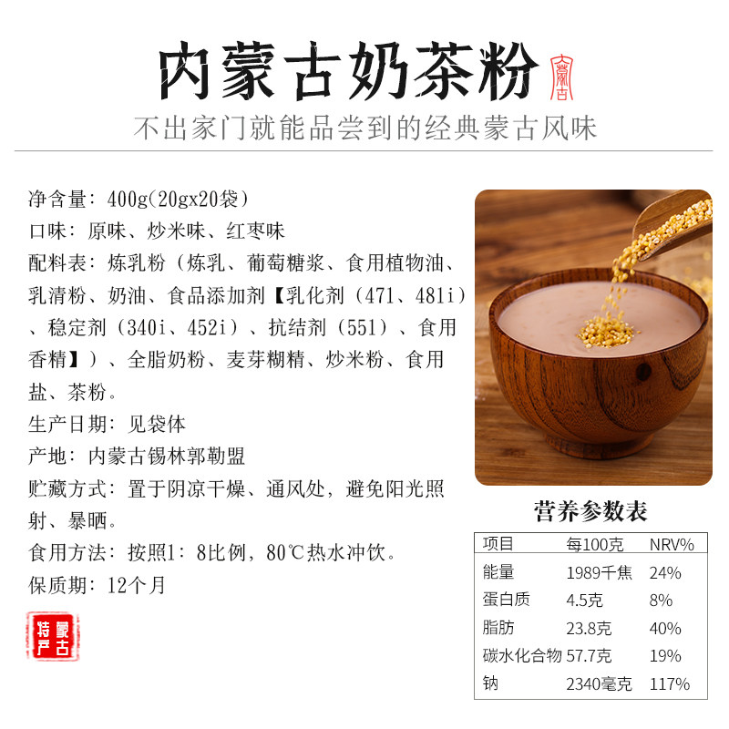 Inner Mongolia Salty Milk Tea Powder 400g Fried Rice Red Date Taste Bagged Instant Ghee Tea Herdsmen Early Tea Afternoon Tea