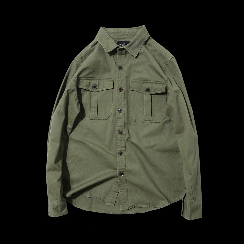 Hard Longwind Day Single Exit Foreign Trade Men's Clothing Factory Cut Mark Tail Single Twill Yarn Card Tooling All-cotton Long Sleeve Shirt
