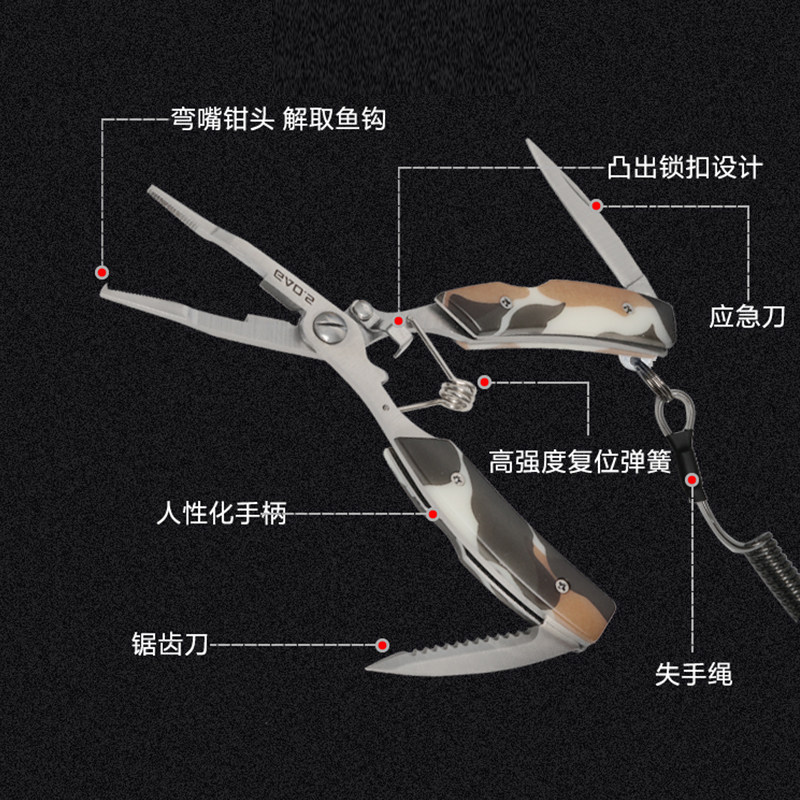 GAO S master Luya pliers with scale control fish device PE line scissors hook taker open small ring stainless steel multi-function