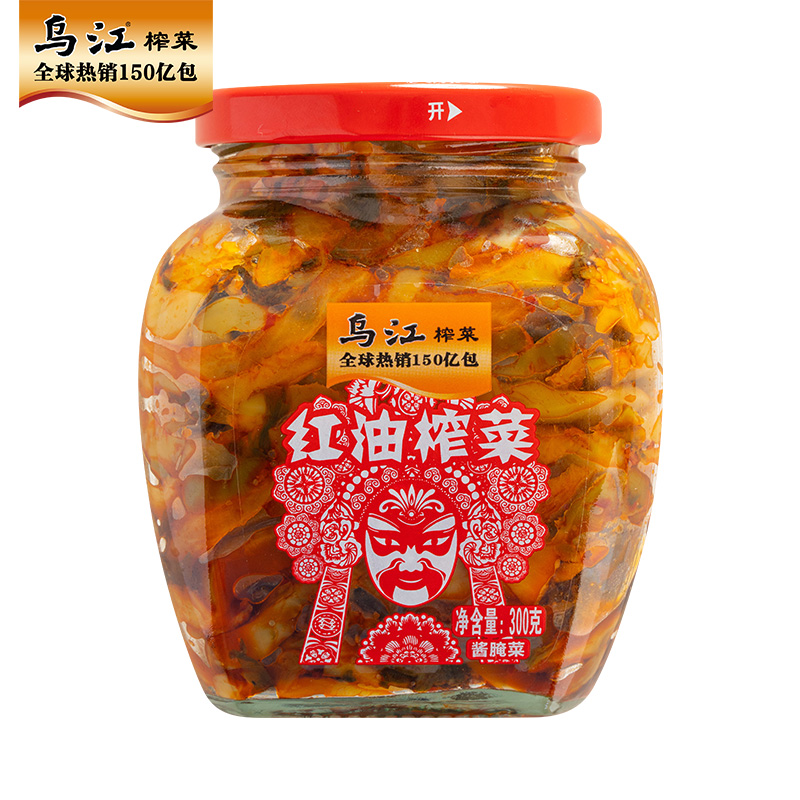 Ujiang Squeezed Vegetable Dish Red Oil Squeezed Vegetable 300g * 4 bottled Sichuan pickle to taste salty pickle Fuling pickle small dish