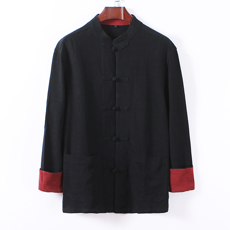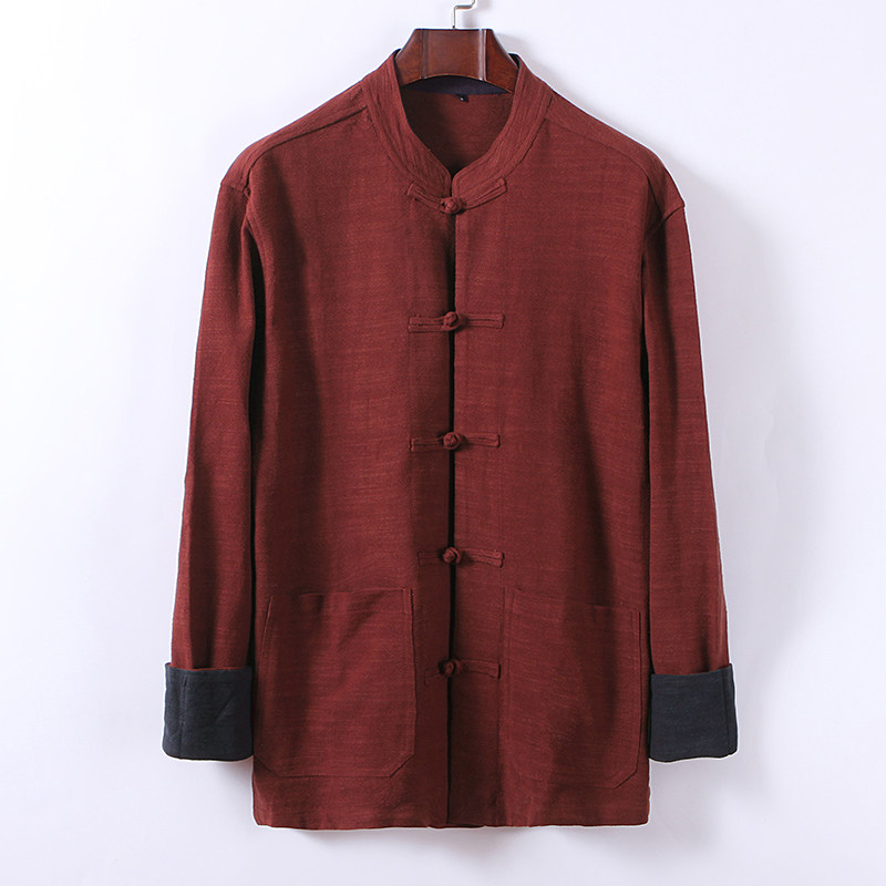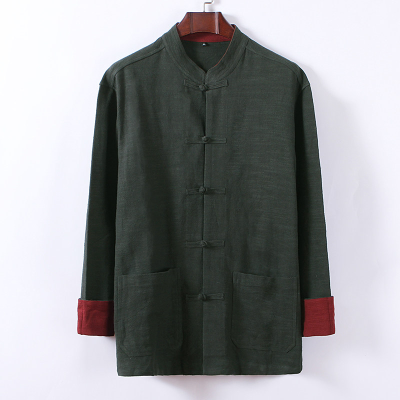 Spring and autumn cotton linen thin jacket men's gattening up for code loose linen long sleeves Tang suit jacket Chinese man