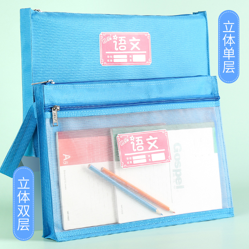 Jeli Thickened Widened Subjects Classification File Bag a4 Information Pull Chain Canvas Ins Carry Book Bag Portable Solid Homework Tutorial number of English disciplines Large capacity Volume Sub-paper to admit students